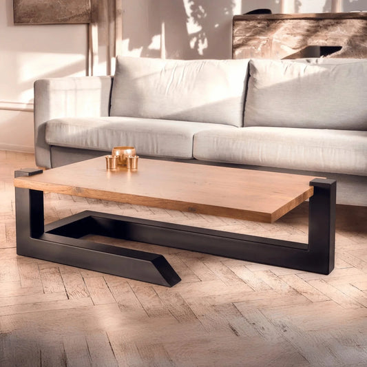ترابيزة قهوة خشب و معدن، 100*50*45 سم
