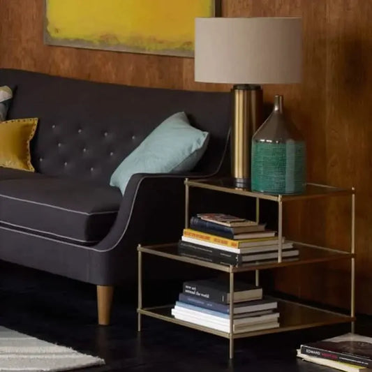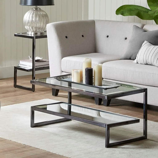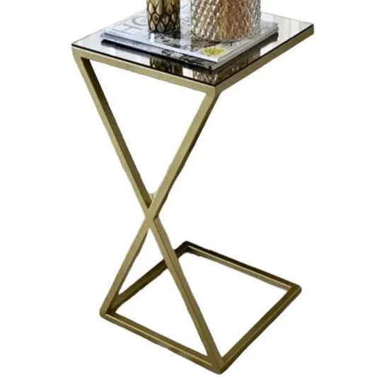 ترابيزة جانبية ستيل بسطح زجاج، 60*30*55 سم