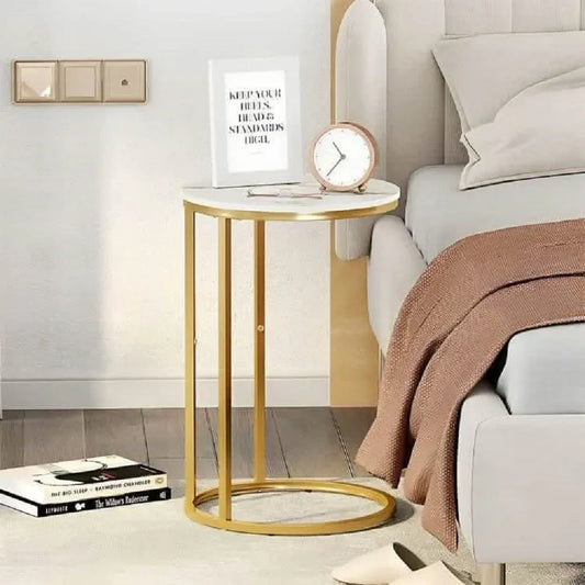 ترابيزة جانبية ستيل بسطح رخام، 40*40*50 سم