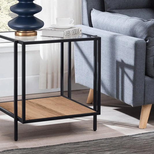 ترابيزة جانبية ستيل بسطح زجاج، 45*45*50 سم