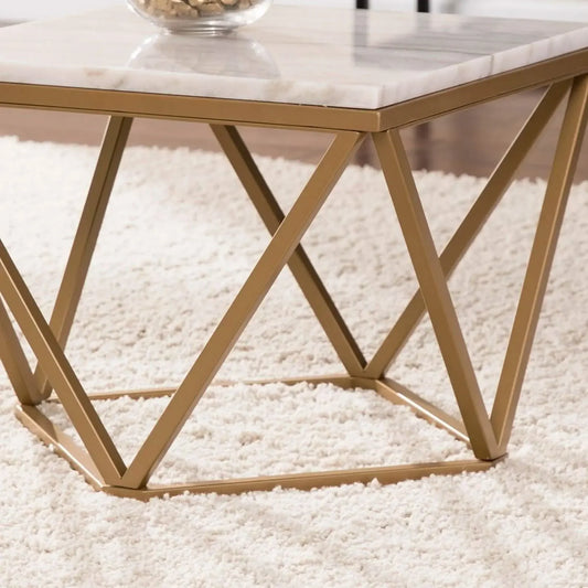 طقم ترابيزات قهوة متداخلة معدن بسطح رخام، قطعتين