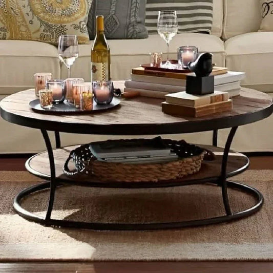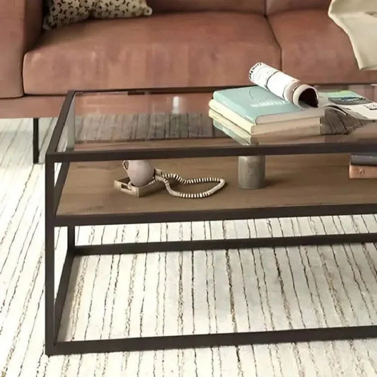 ترابيزة قهوة معدن بسطح خشب، 85*85*45 سم