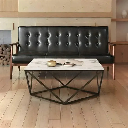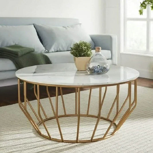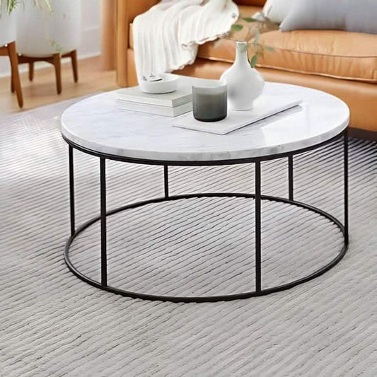 ترابيزة قهوة ستيل بسطح رخام، 90*90*45 سم