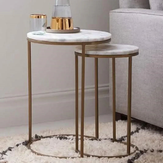 طقم ترابيزات جانبية متداخلة معدن بسطح رخام، قطعتين