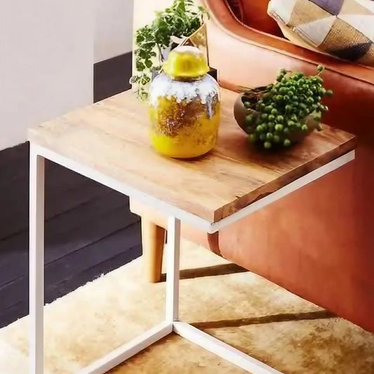 ترابيزة جانبية ستيل بسطح خشب، 40*40*50 سم