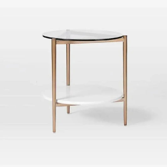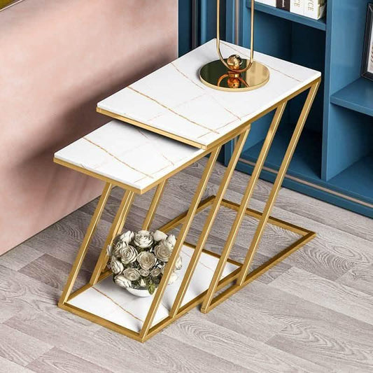 طقم ترابيزات جانبية ستيل بسطح رخام، قطعتين