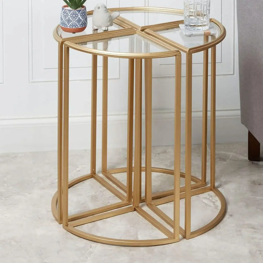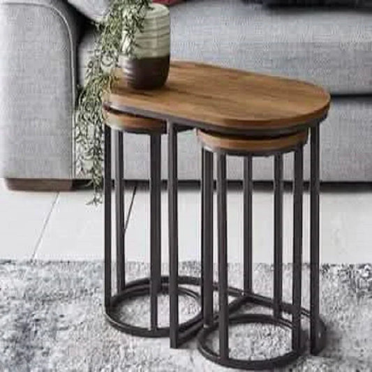 طقم ترابيزات جانبية متداخلة ستيل وخشب ام دي اف، 3 قطع