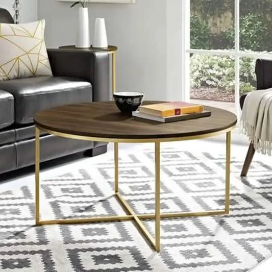 ترابيزة قهوة ستيل بسطح خشب، 80*80*45 سم