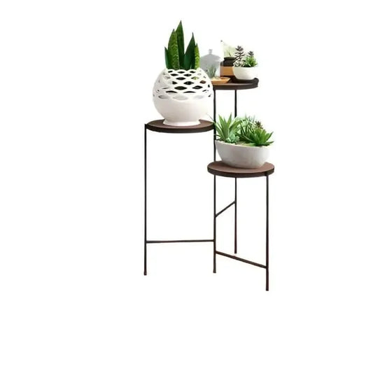 طقم ترابيزات جانبية معدن بسطح خشب، 3 قطع