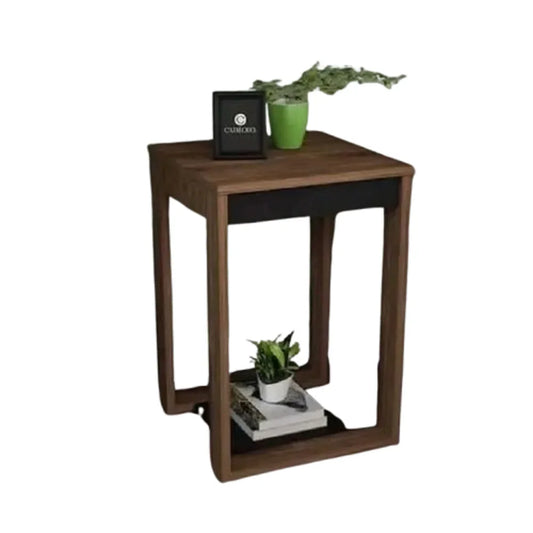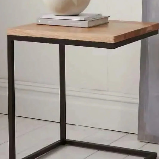 ترابيزة جانبية ستيل بسطح خشب، 40*40*50 سم