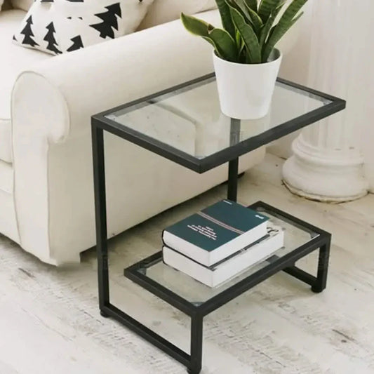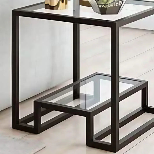 ترابيزة جانبية ستيل بسطح زجاج، 40*40*50 سم