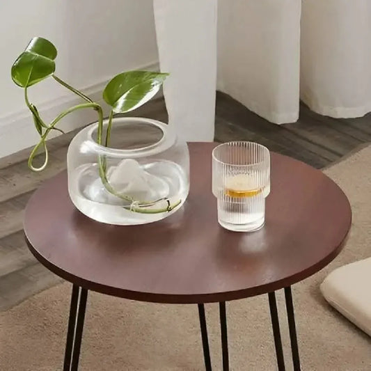 ترابيزة جانبية ستيل بسطح خشب، 45*50 سم