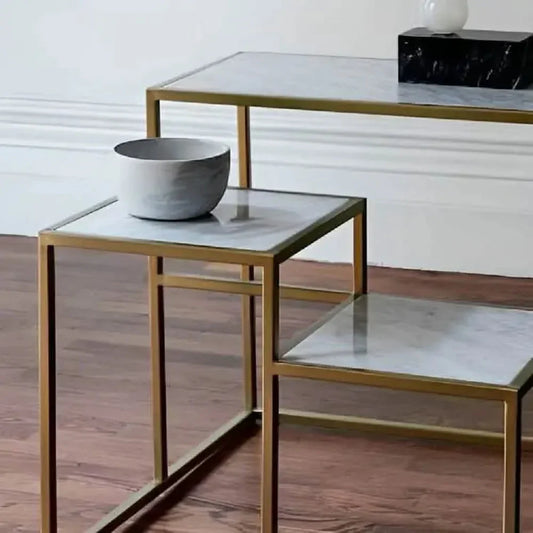 طقم ترابيزة قهوة متداخلة ستيل بسطح رخام، قطعتين