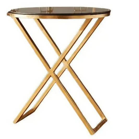 ترابيزة جانبية ستيل بسطح زجاج، 25*25*50 سم