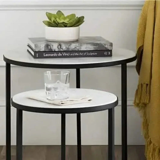 طقم ترابيزات جانبية متداخلة معدن بسطح رخام، قطعتين
