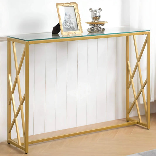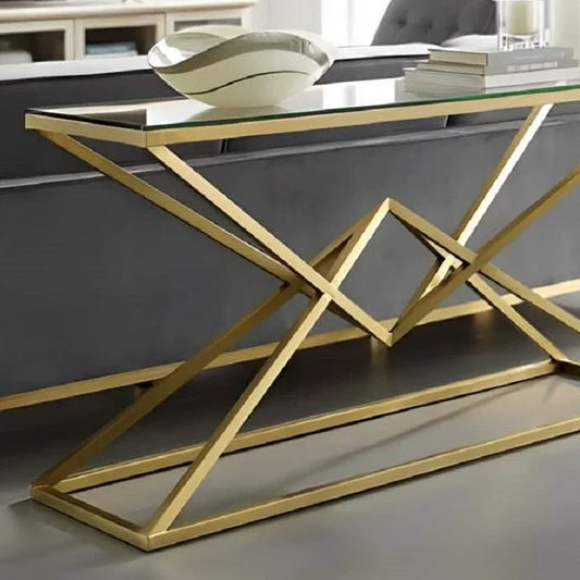 كونسول ستيل بسطح زجاجي، 120*40*90 سم