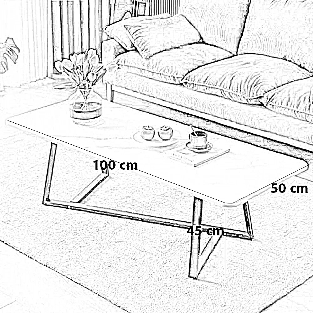 ترابيزة قهوة معدن بسطح خشب، 100*50*45 سم