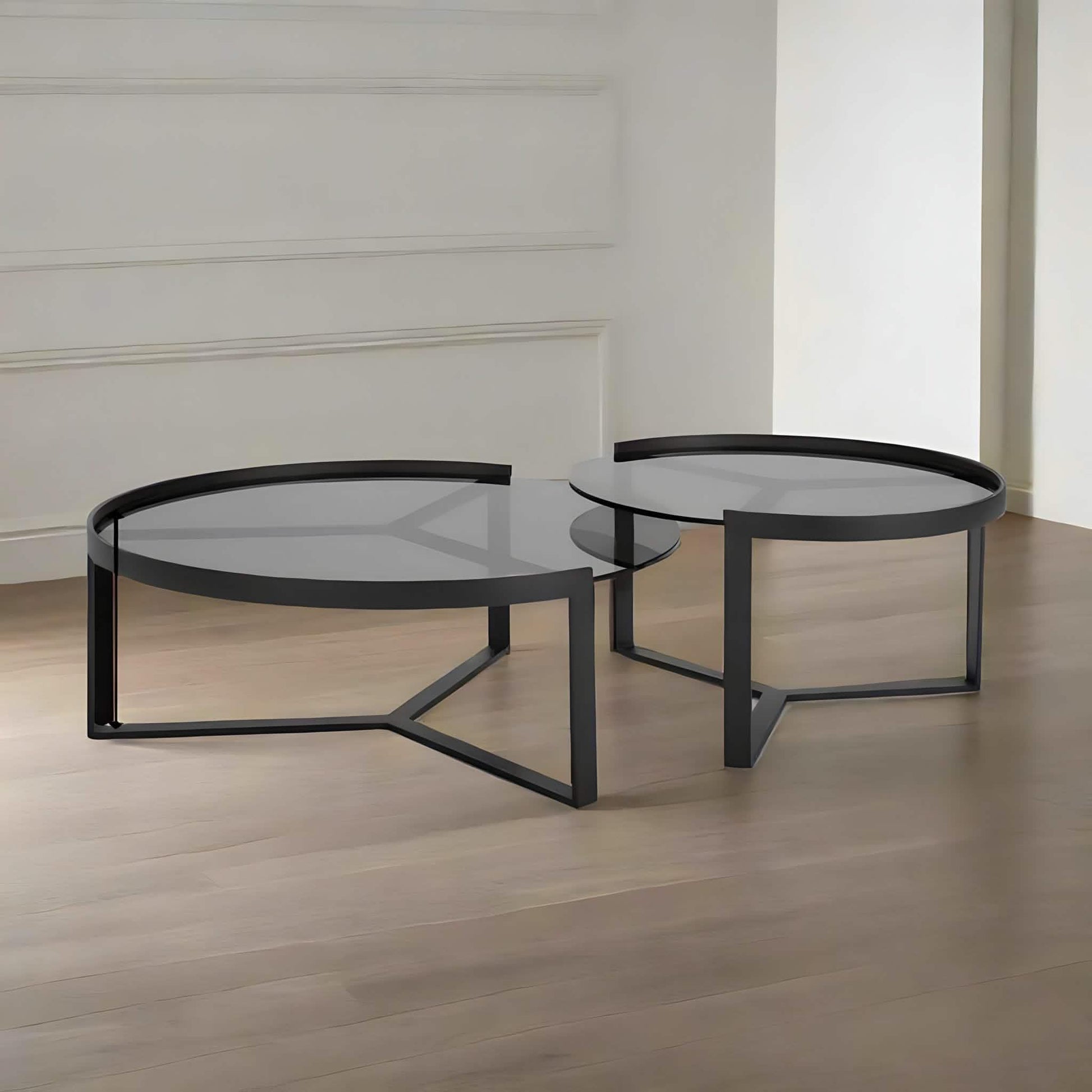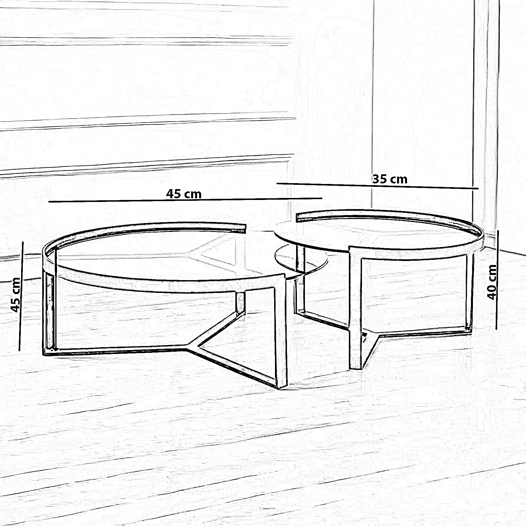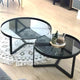 طقم ترابيزات قهوة ستيل بسطح زجاج، قطعتين
