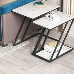 طقم ترابيزات جانبية ستيل بسطح رخام، قطعتين