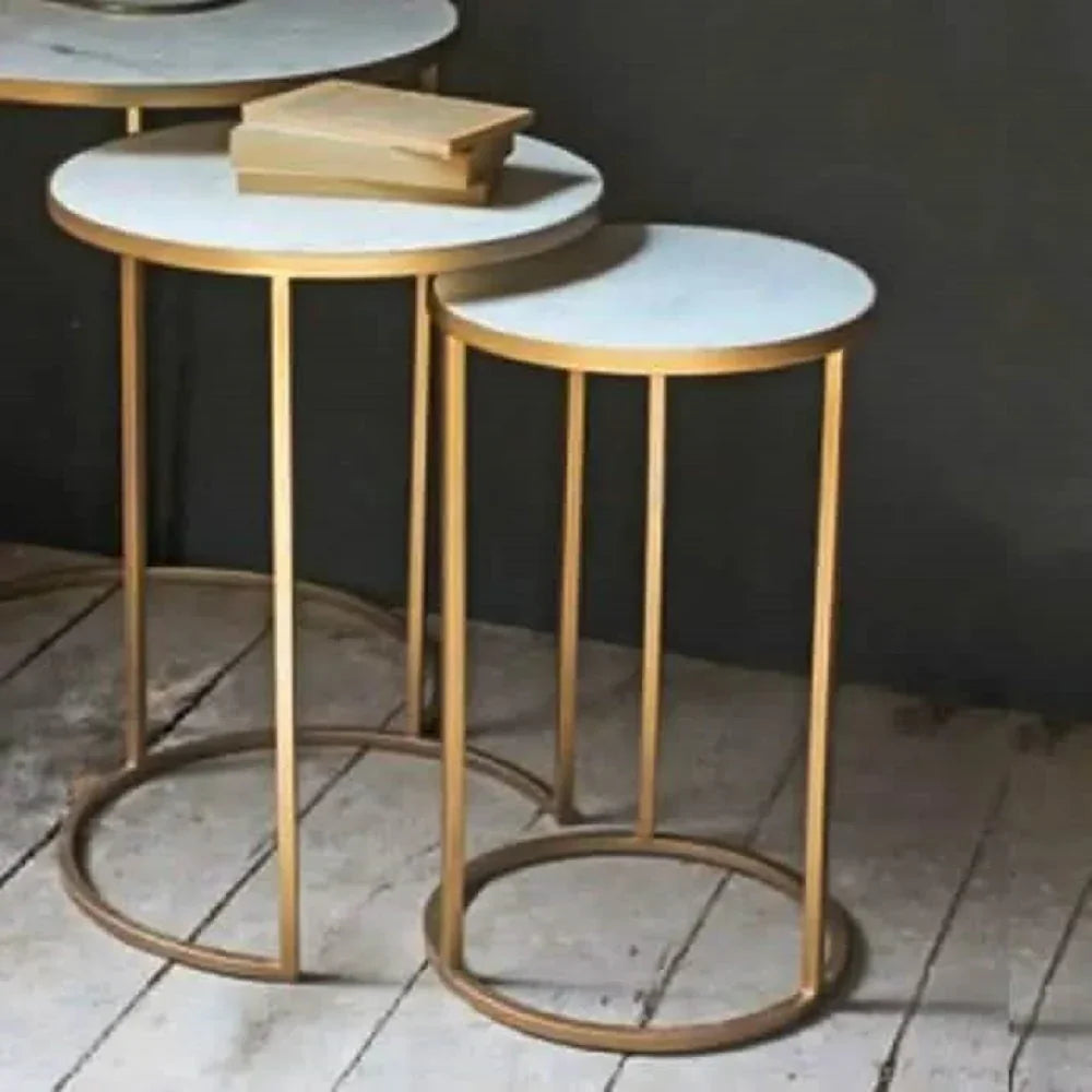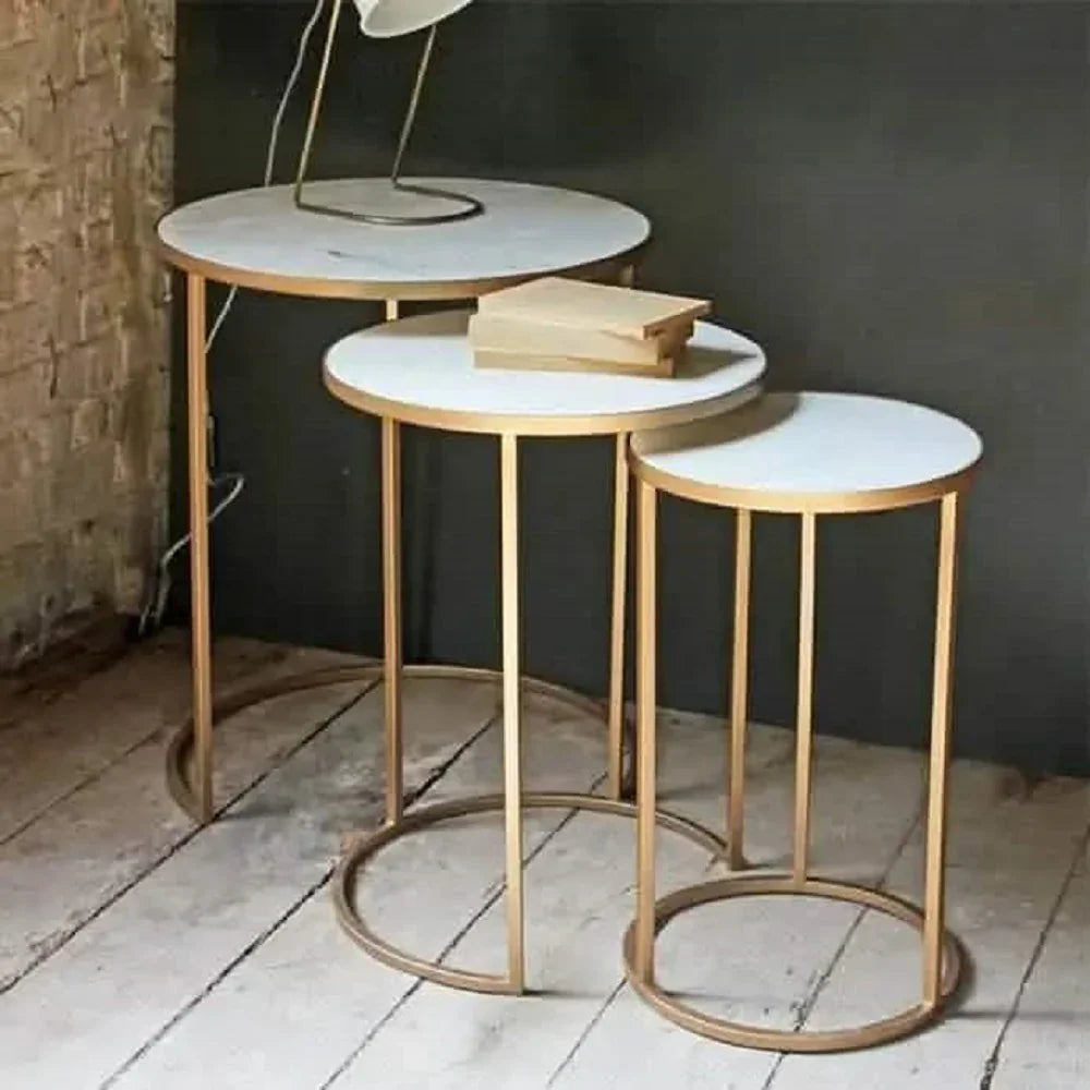 طقم ترابيزات جانبية متداخلة معدن بسطح رخام، 3 قطع