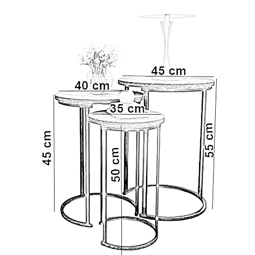 طقم ترابيزات جانبية متداخلة ستيل وخشب ام دي اف، 3 قطع