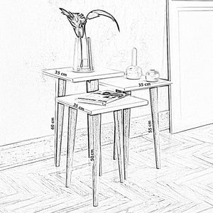 الترابيزة الكبيرة:العرض 35× العمق 35 × الارتفاع 60 سم - الترابيزة المتوسطة : العرض 35× العمق 35 × الارتفاع 55 سم- الترابيزة الصغيرة : العرض 35× العمق 35 × الارتفاع 50 سم |