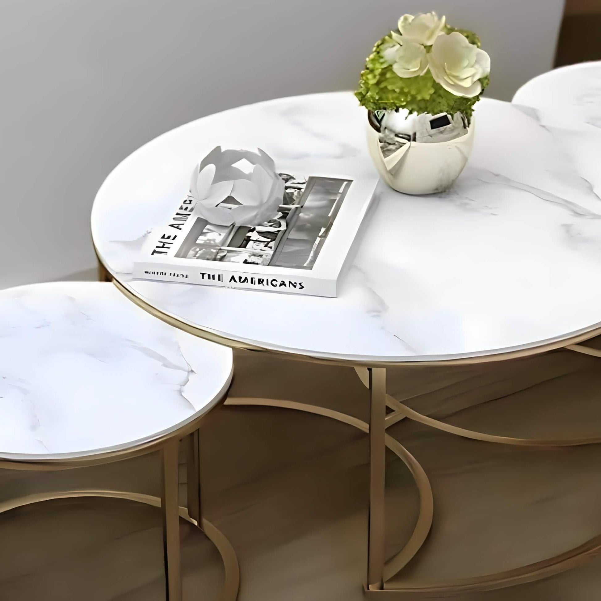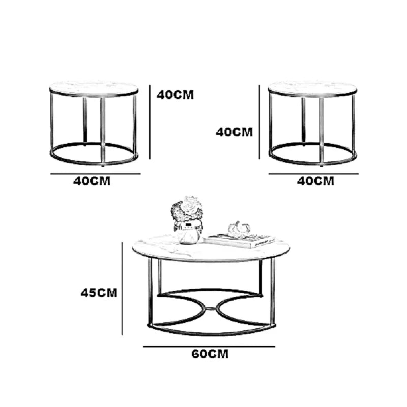 طقم ترابيزات قهوة متداخلة ستيل بسطح رخام، 3 قطع