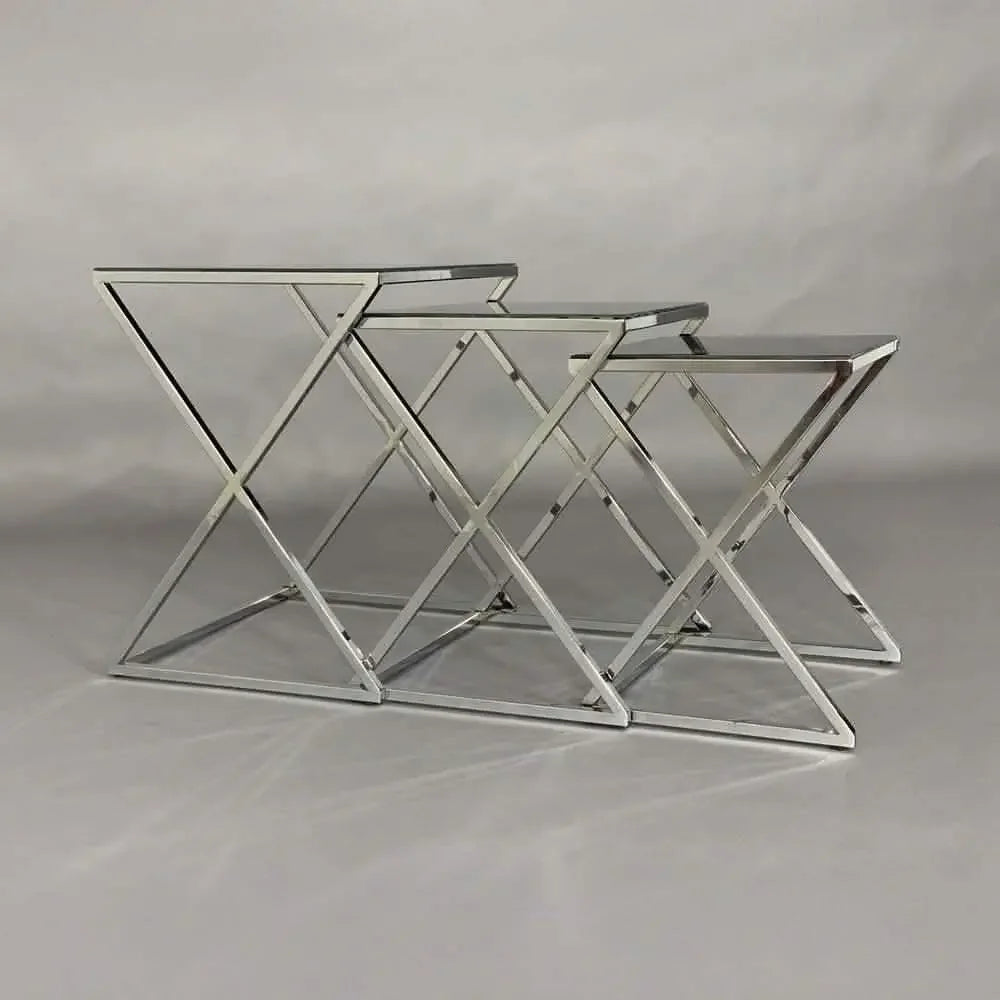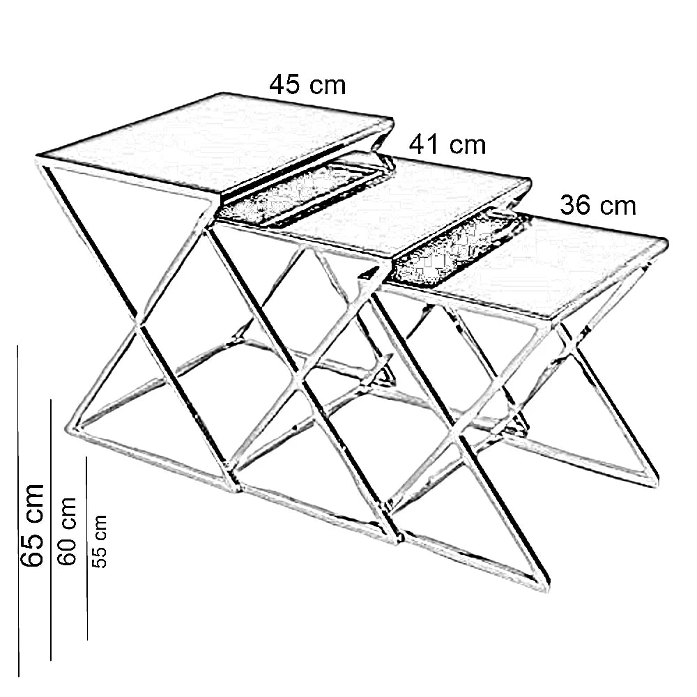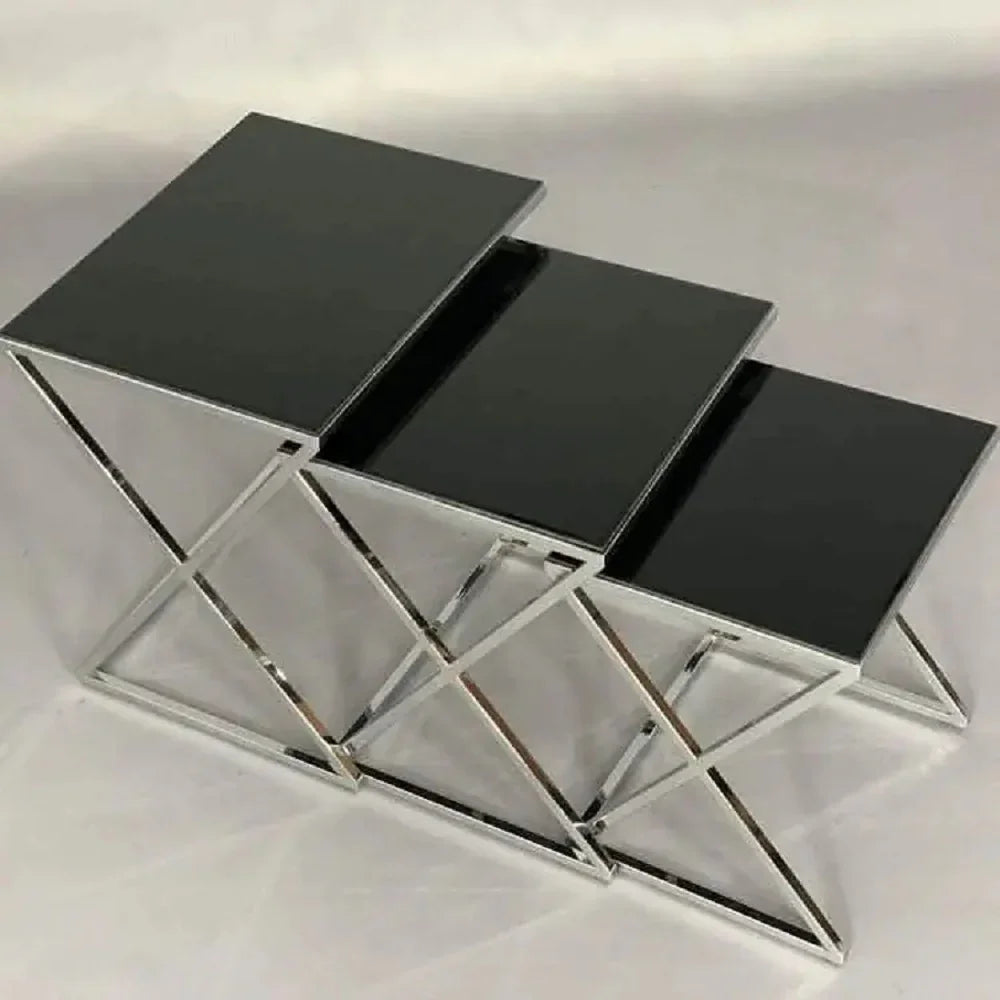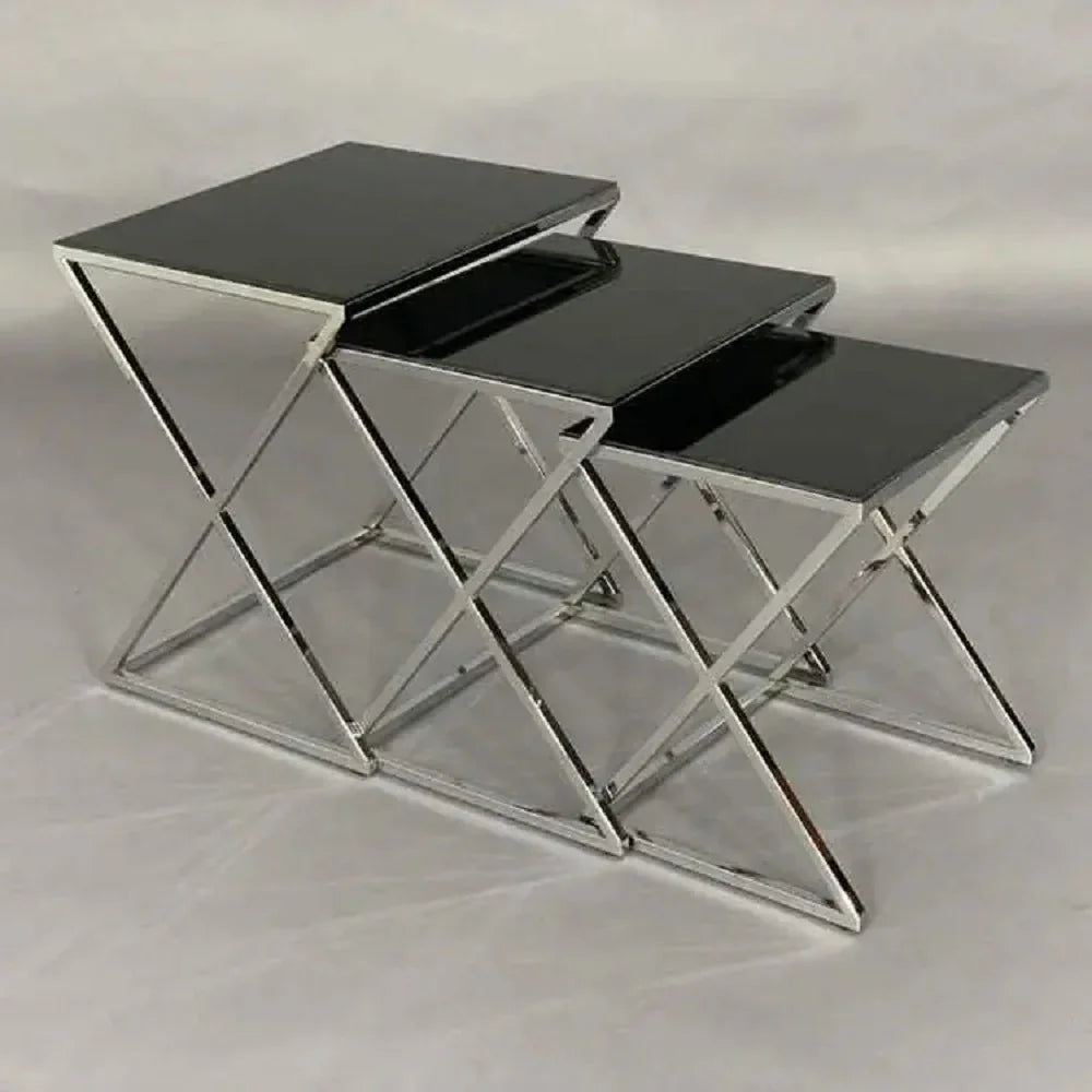 طقم ترابيزات جانبية متداخلة ستيل بسطح زجاج، 3 قطع