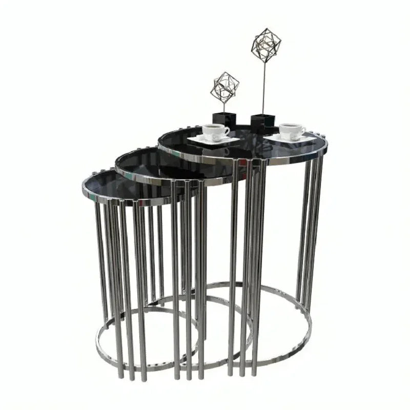طقم ترابيزات جانبية ستيل بسطح زجاج، 3 قطع
