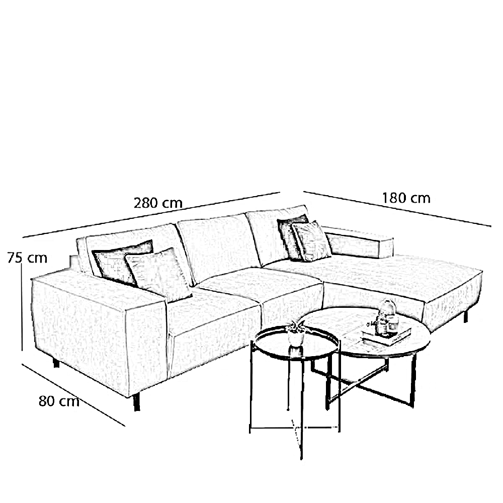 | المقاس | العرض 280 × الطول 180 × العمق 80 × الارتفاع 75 سم |