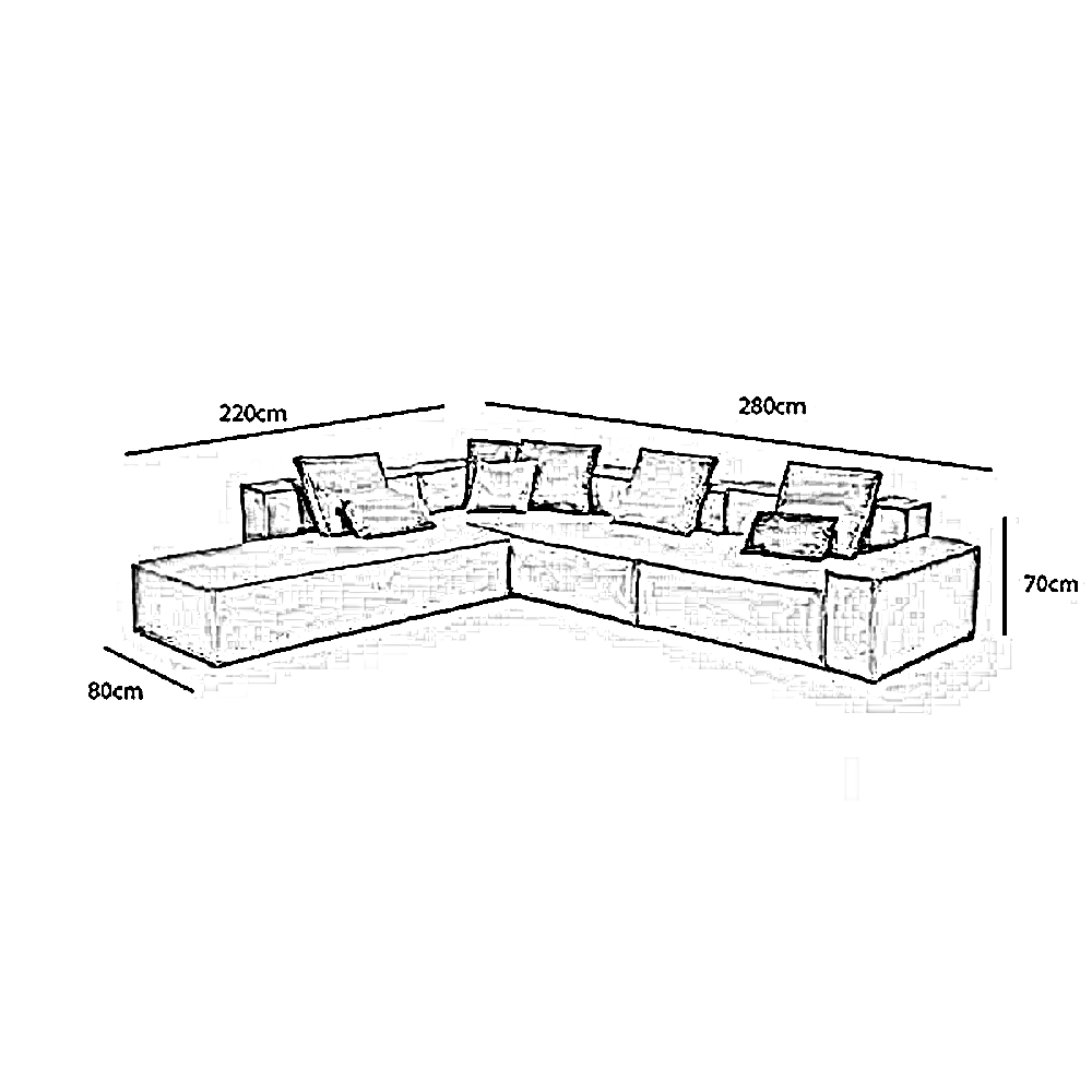 | المقاس | العرض 280 × الطول 220 × العمق 80 × الارتفاع 70 سم |