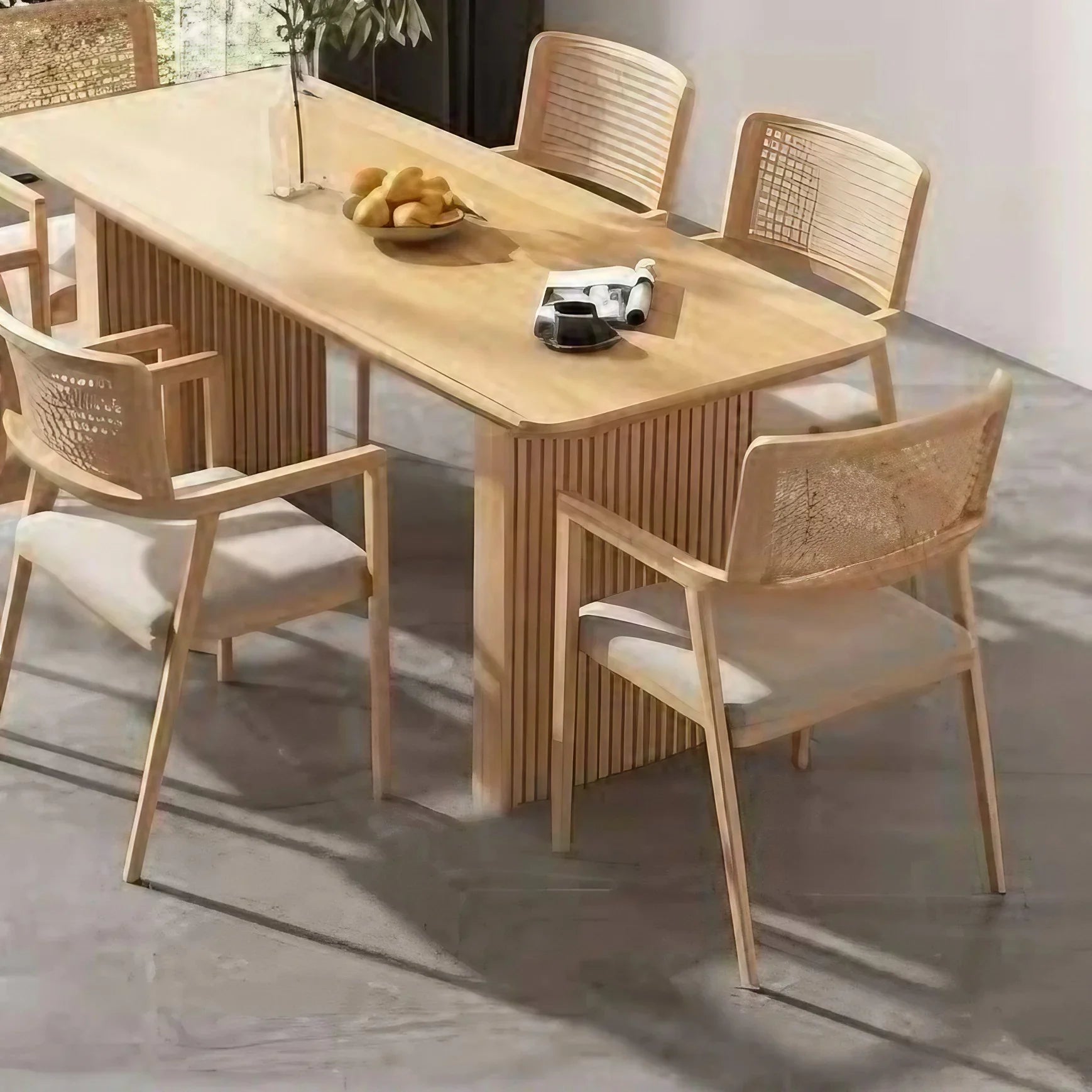 طقم سفرة خشب زان و كونتر، 7 قطع