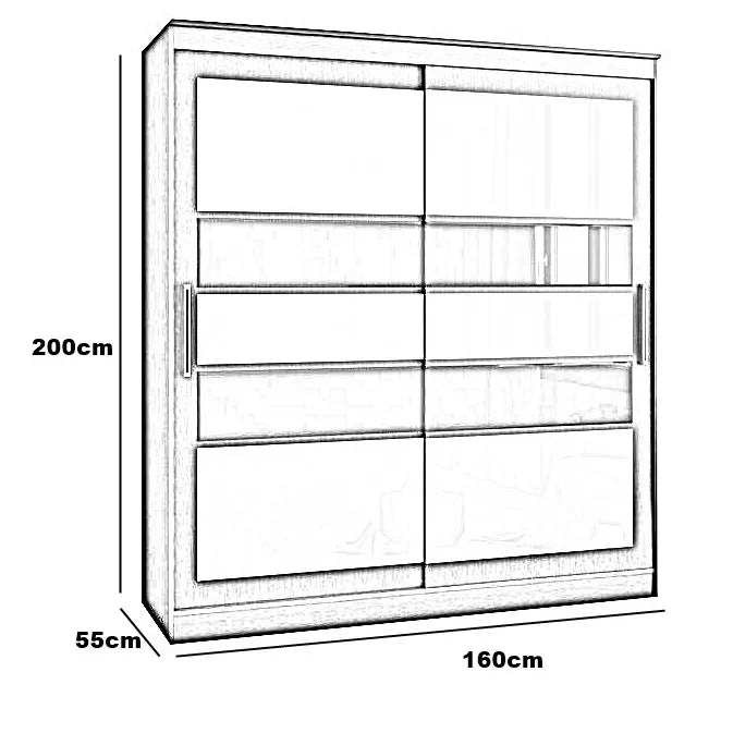 | مقاسات الدولاب | العرض 160 × العمق 55 × الارتفاع 200 سم |