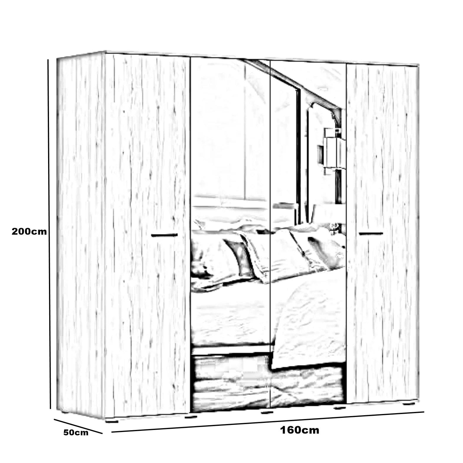 | مقاسات الدولاب | العرض 160 × العمق 50 × الارتفاع 200 سم |