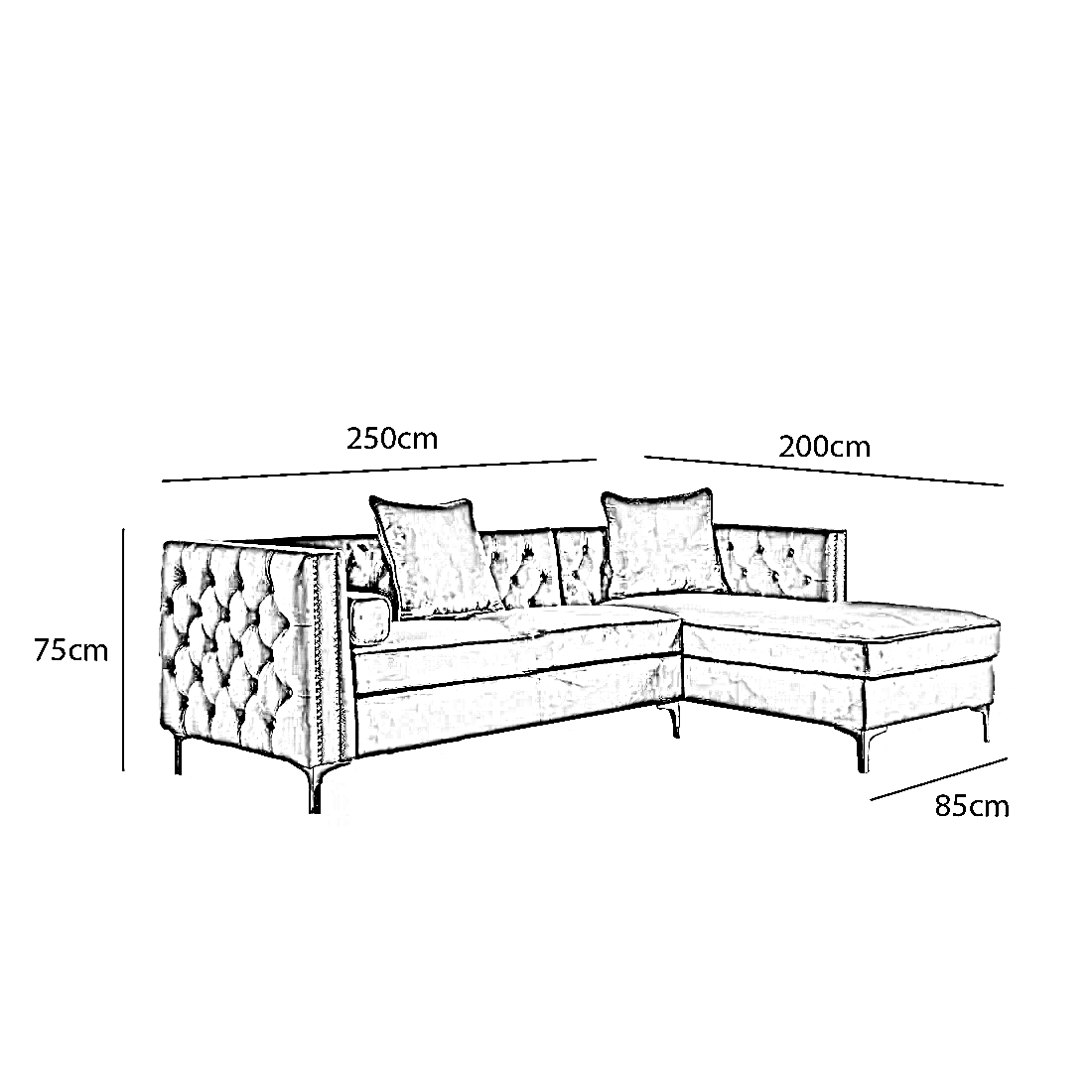 | المقاس | العرض 250 × الطول 200× العمق 85× الارتفاع 75 سم |