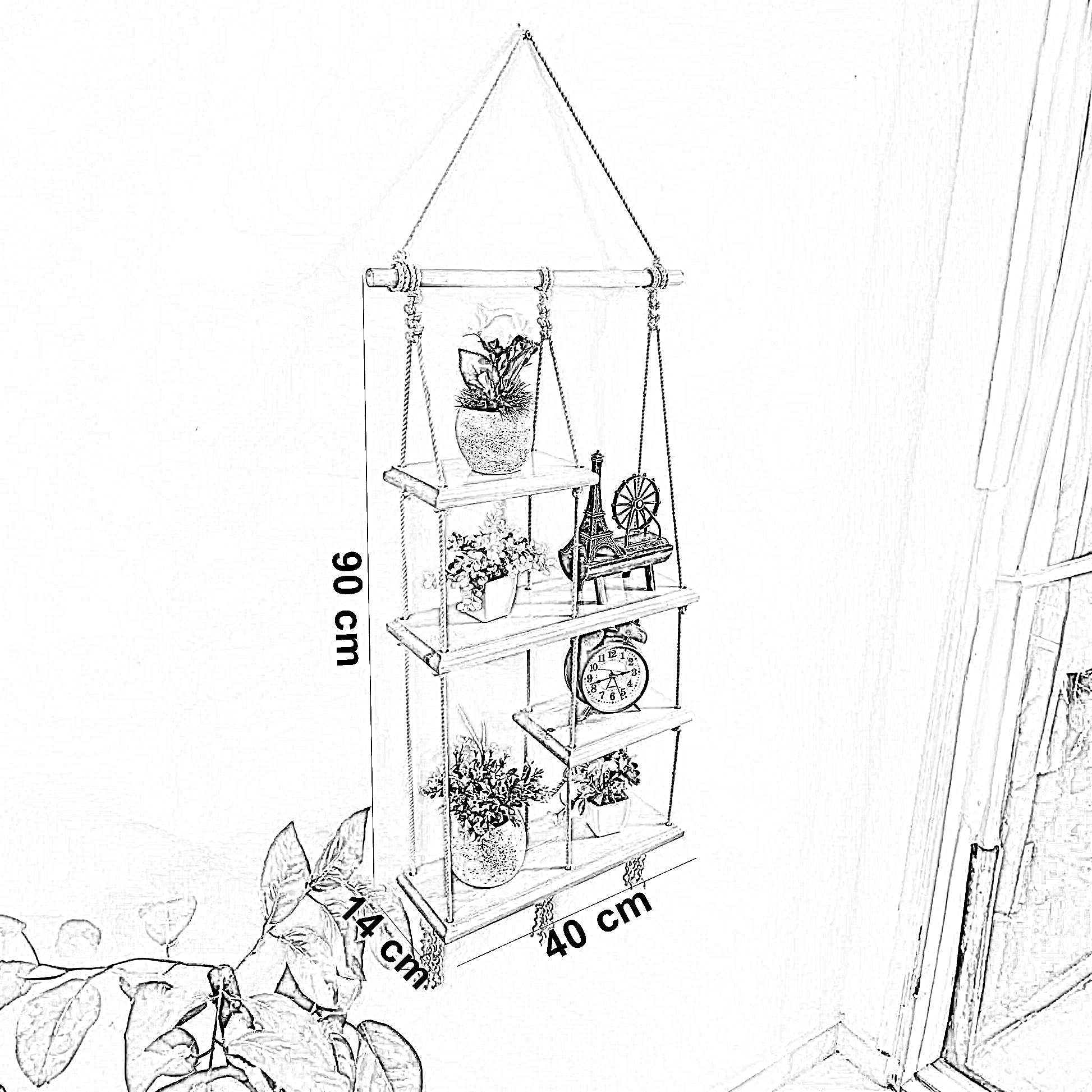 وحدة أرفف مكرمية قطن وموسكي، 40*14*90 سم