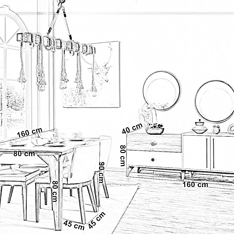 مقاس البوفيه:العرض 160× العمق 40× الارتفاع 80 سم- مقاس الترابيزة:العرض 160× العمق80 ×الارتفاع80 سم - مقاس الكرسي - العرض 45× العمق 45× الارتفاع 90 سم |