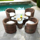 كراسي و ترابيزة مصنعة من الراتان البيور المستورد من كوريا حيث الراتان مجدول على حديد سميك مدهون فرن الكتروستاتيك ضد الصدأ والعوامل الجوية