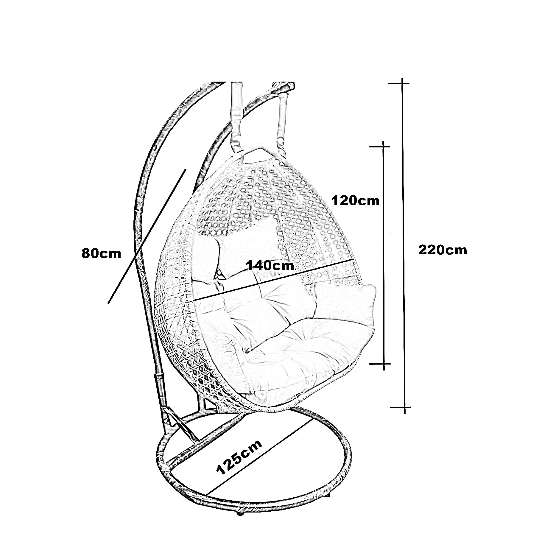 | مقاس المرجيحة | القطر 125 ×الارتفاع 220 سم |