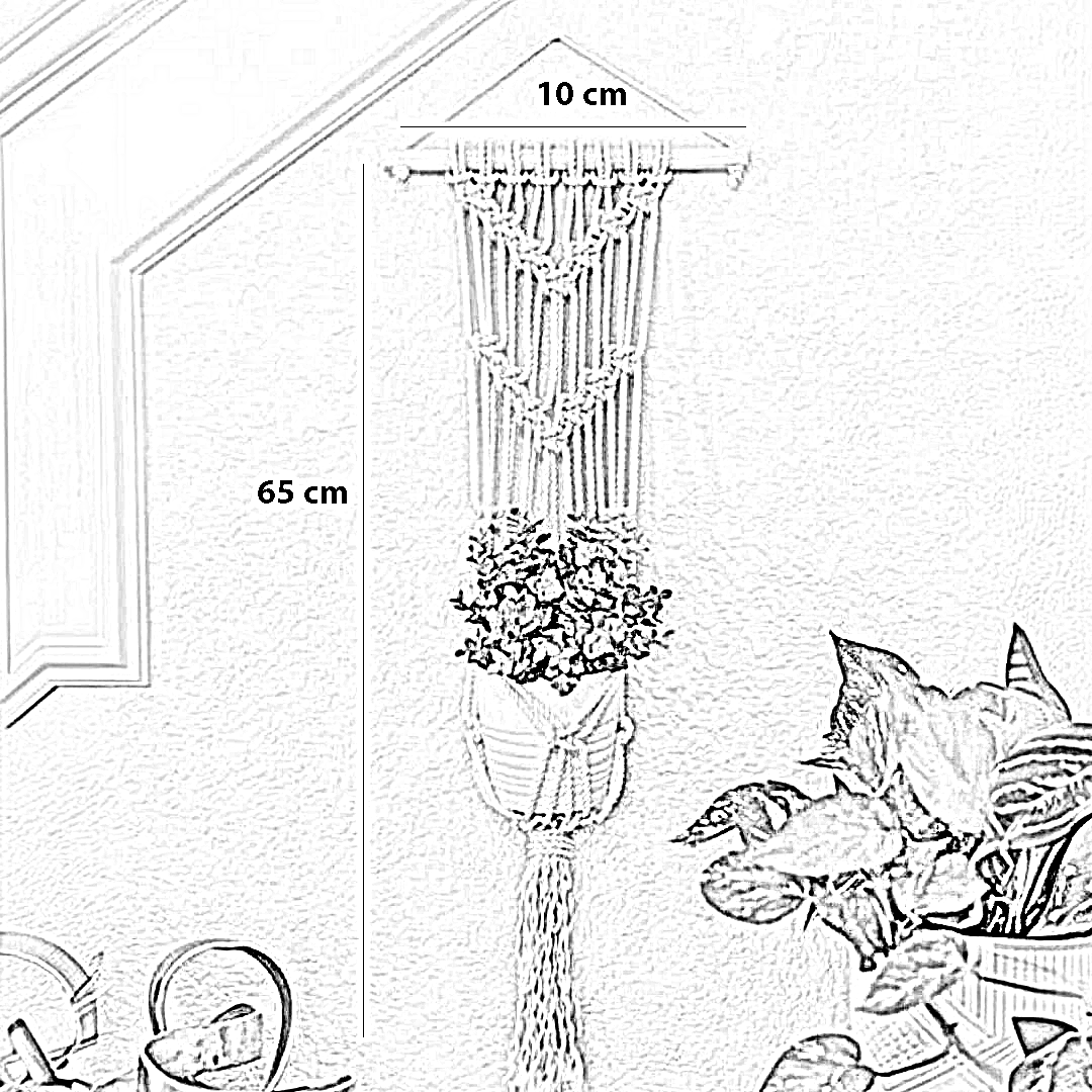مكرمية حامل أواني زرع قطن و موسكي، 10*65 سم