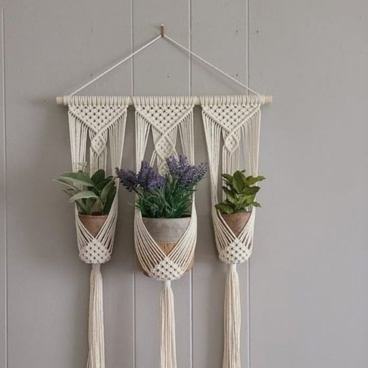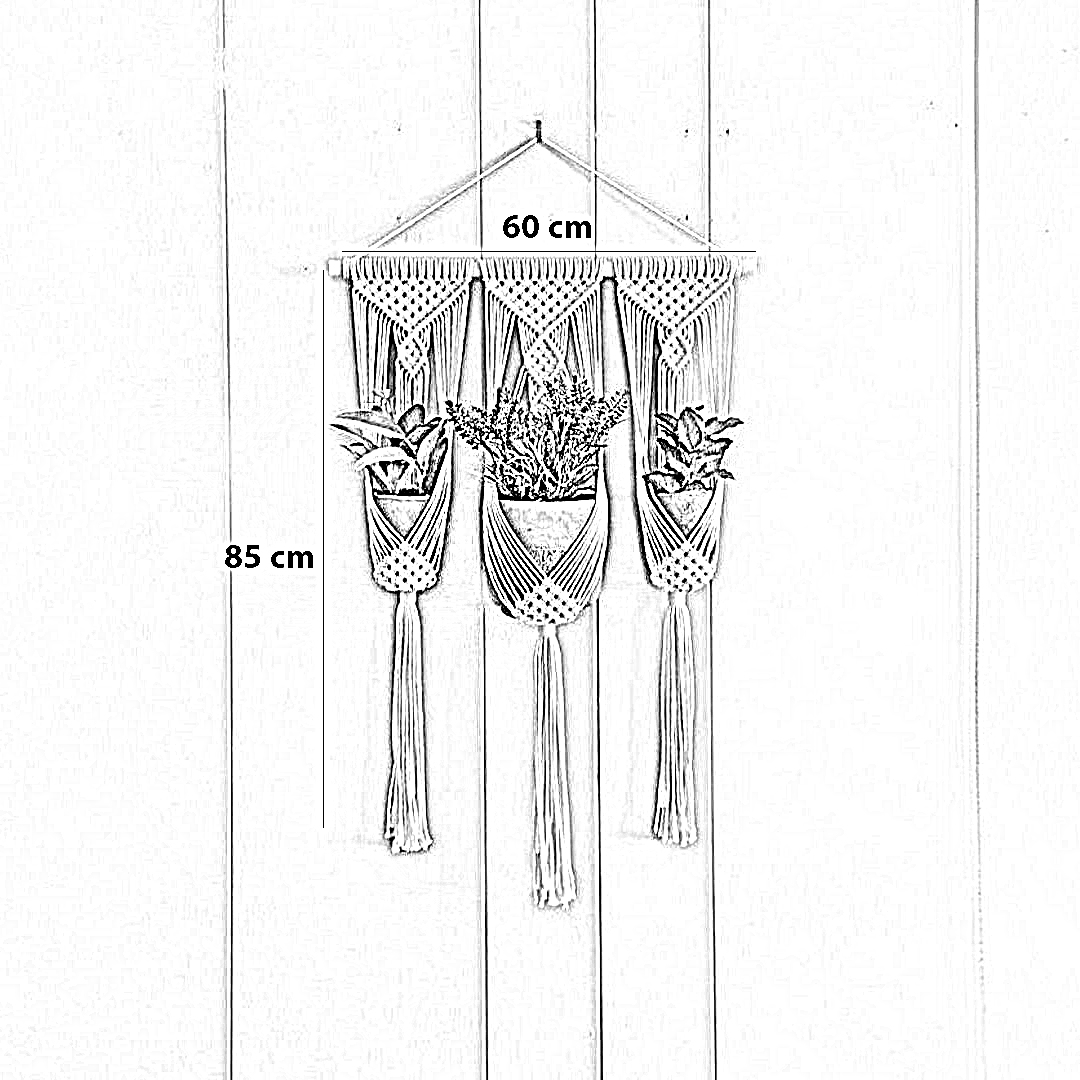 مكرمية حامل أواني زرع قطن و موسكي، 60*85 سم