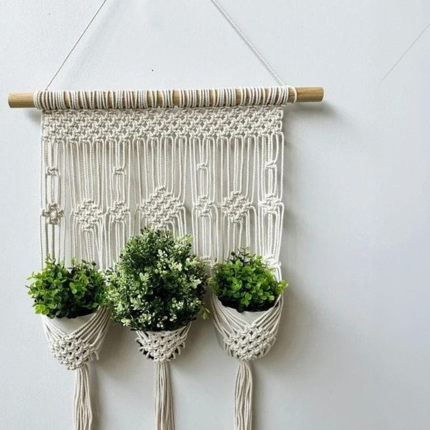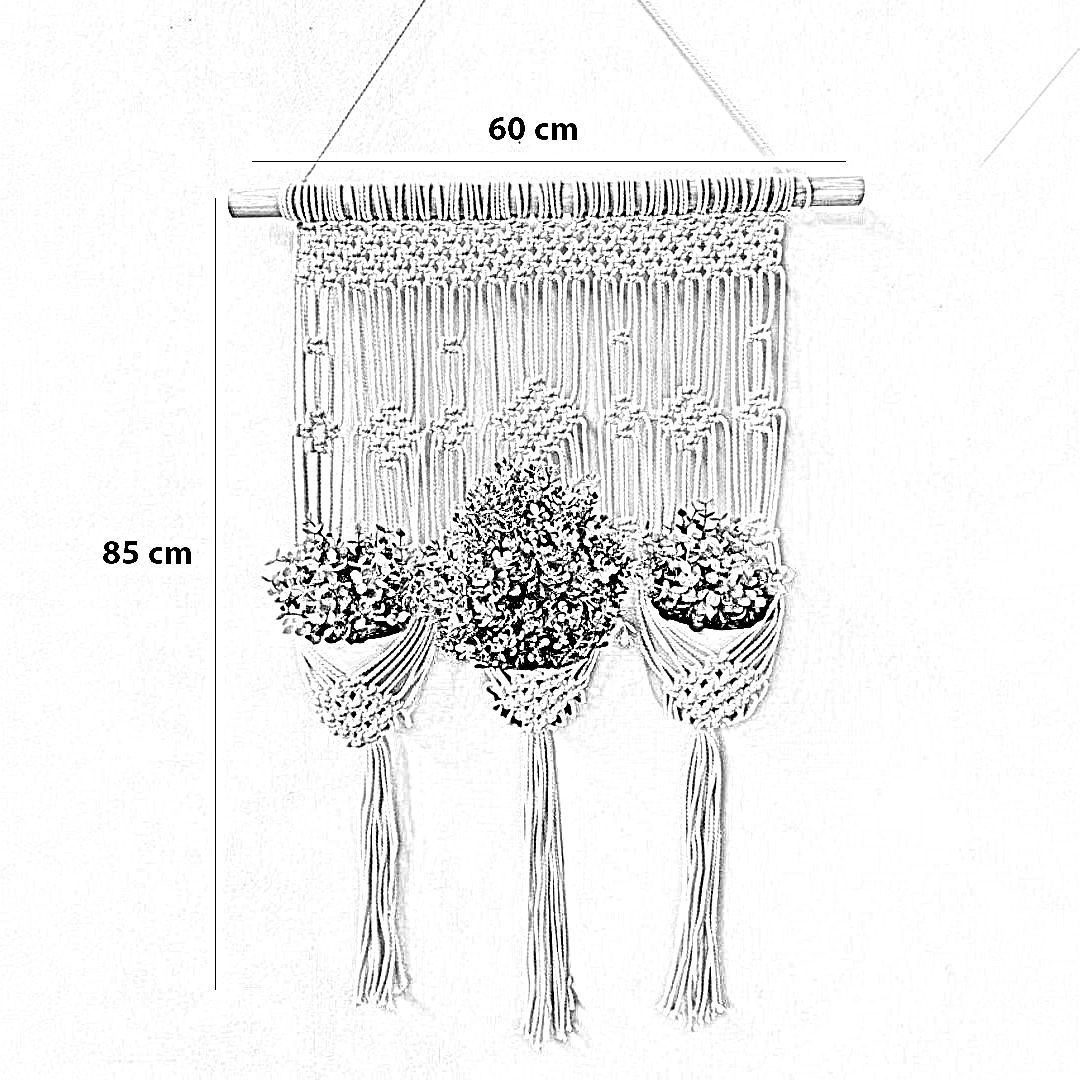 مكرمية حامل أواني زرع قطن و موسكي، 60*85 سم