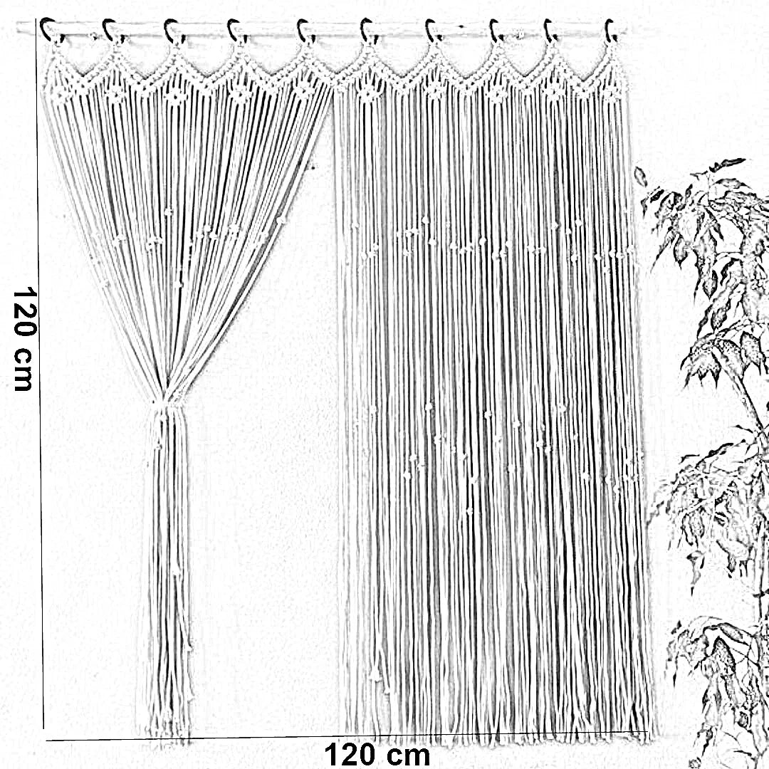 ستارة مكرمية خشب موسكي وقطن، 120*120 سم