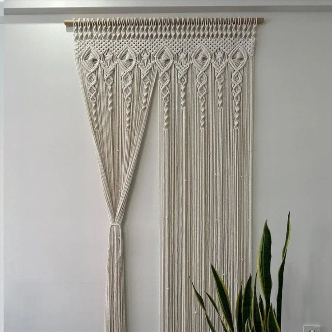 ستارة مكرمية خشب موسكي وقطن، 120*230 سم