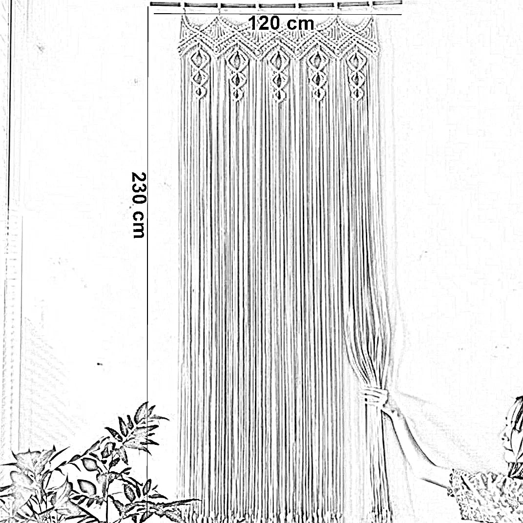 ستارة مكرمية خشب موسكي وقطن، 120*230 سم