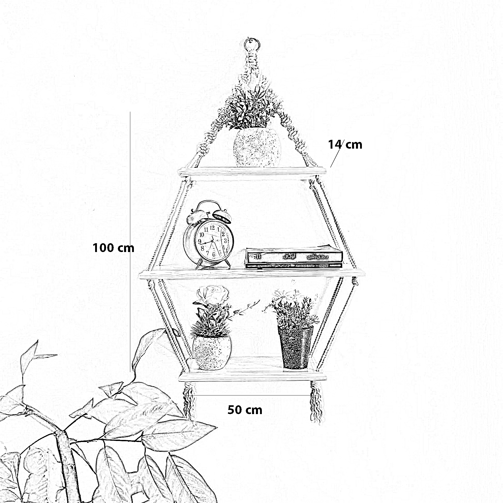 وحدة أرفف مكرمية قطن و خشب موسكي، 50*14*100 سم