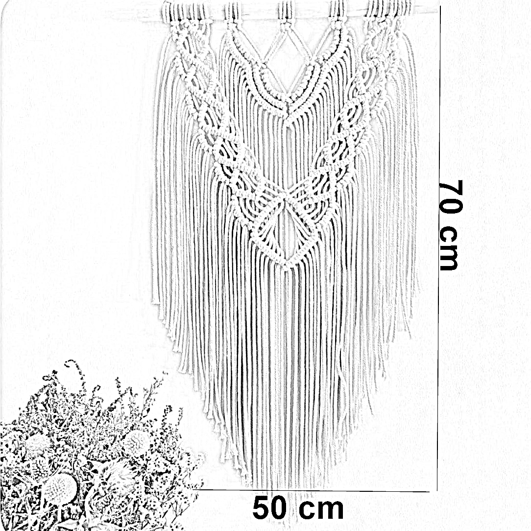 مكرمية حائط قطن وخشب طبيعي، 50*70 سم