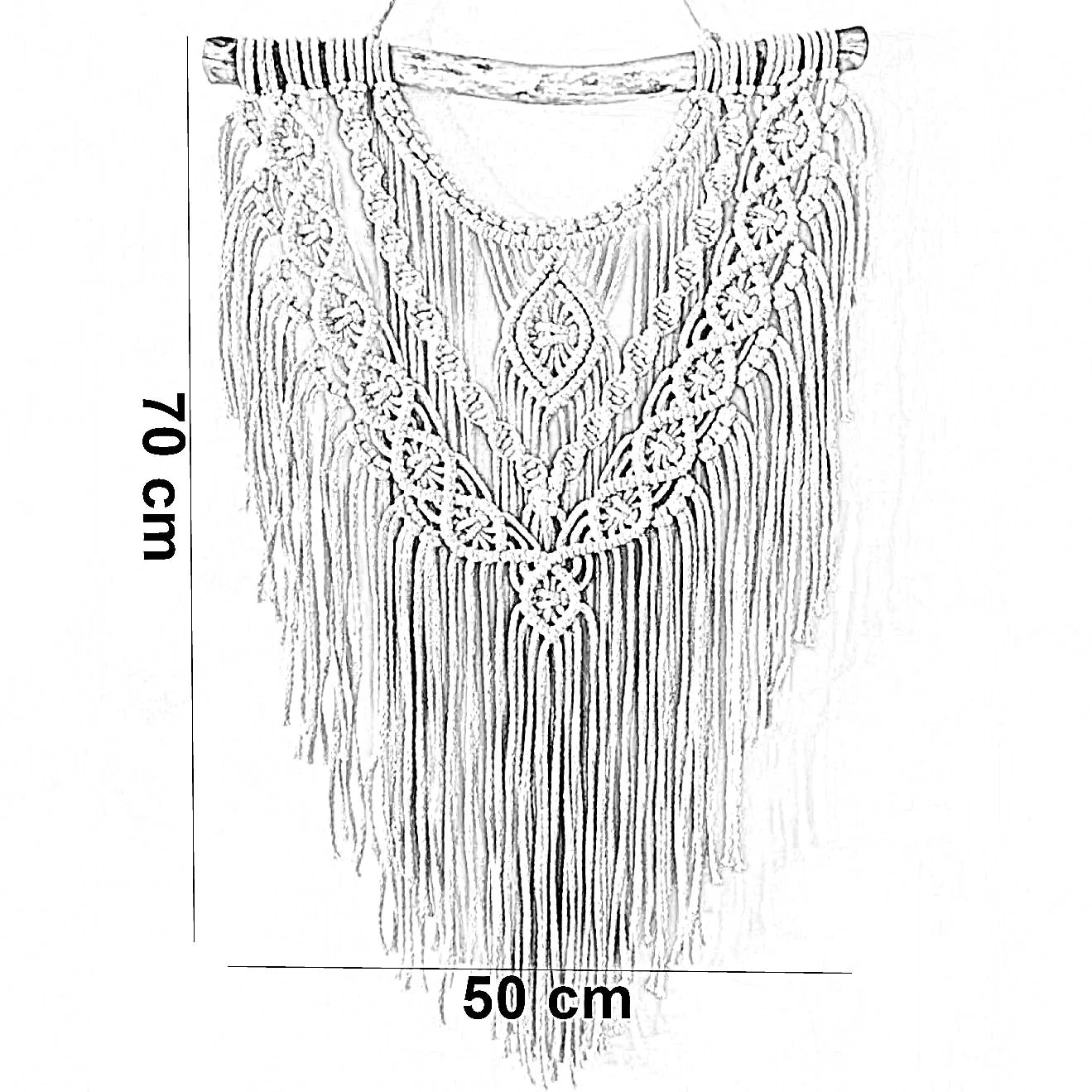 مكرمية حائط قطن وخشب طبيعي، 50*70 سم