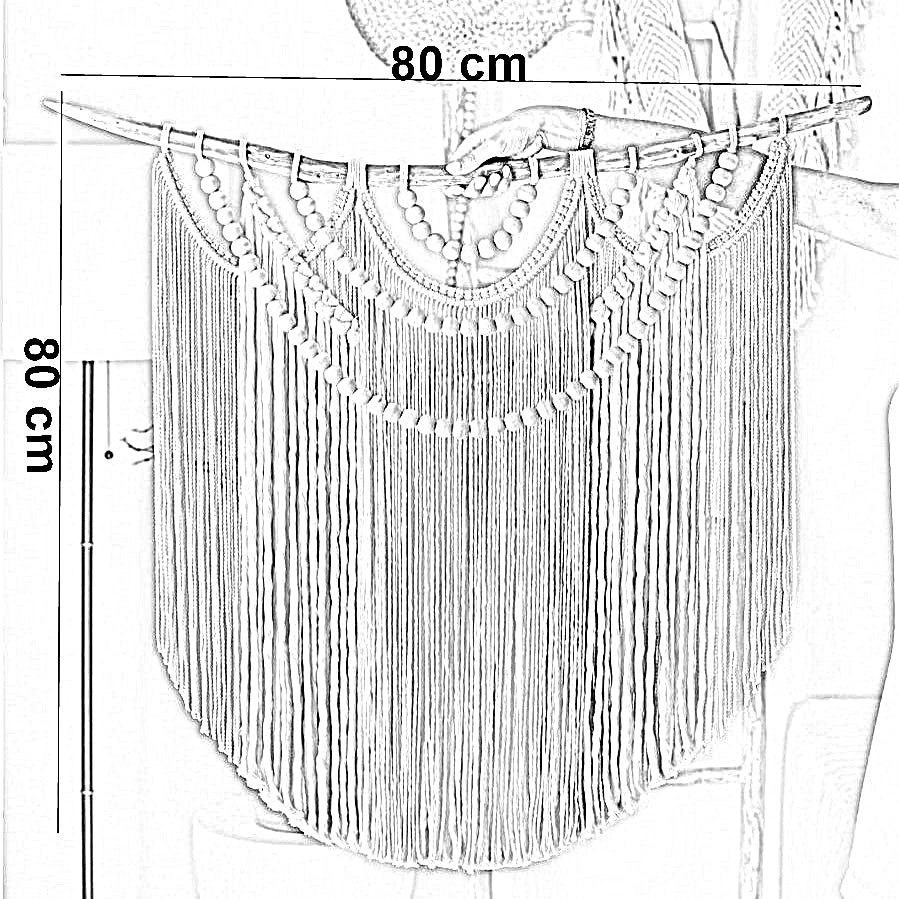 مكرمية حائط قطن وخشب طبيعي، 80*80 سم