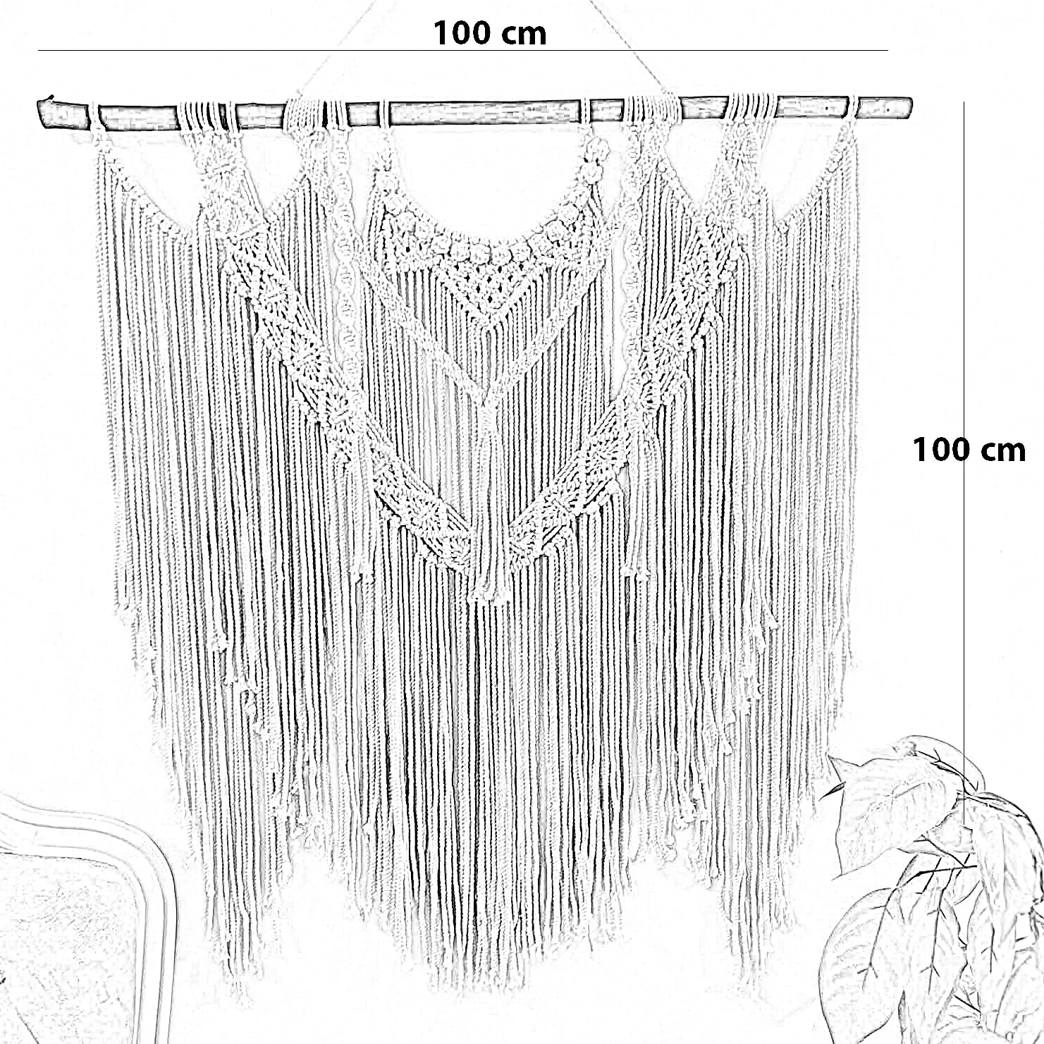 مكرمية حائط قطن و خشب موسكي، 100*100 سم